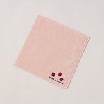 イチゴとブランドのロゴの刺繍のみのシンプルなデザインです。色味は写真の通り本当に真っ白でした!!!(すぐ汚れてしまいそうです、、、)