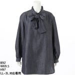 少し光沢がある感じですが、落ち着いた雰囲気のブラウスだと思います。約157cmでヒップも隠れる長さです。