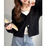 【2025AW新作】雰囲気美人。前後2way格子柄透かし編みショート丈ニットカーディガン(長袖)の口コミ一覧