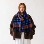 ブルー系チェックが正統派の可愛さです。幅約25cmなので、ボリュームが出すぎず、差し色にちょっと良いです。