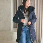 ブラックのMを購入しました。こちらのダウンは同じ型の物を5年位前に買って縫い目の隙間から羽毛がチラホラ出てきてしまっていたので新しく買い替えました。以前はリサイクルダウンではなくカナダダウンでした。まだ着ていませんが暖かさはどうなのか気になります。見た目は同じく高級感があり素敵です。