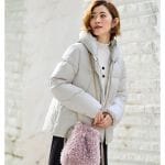 真っ白すぎず、ややくすんでいる色味が希望通りでした。非常に軽いです。フードは小さめのため、しっかりとかぶることはできません。首周りの防寒には役立っています。