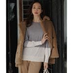 ウール100%ですが薄手でコートを着ても楽に着用できます。ゆったりデザインなので身体のラインが出ないので気に入りました。グレーとホワイトの切り替えがおしゃれです。