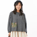 軽いのに柔らかくふわふわで薄くない素材は春先に重宝すると思います。濃い色はスッキリ見える効果がありそうです。大胆に大きめの可愛い刺繍は濃い布に溶け込む感じで大人でも抵抗感無しです。