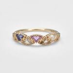 あまり見かけないクラシカルなデザインで、お洒落に縁取りされた落ち着いたカラーのストーンが並んでいて気に入りました。自分の誕生石も入っていたので、お守りの意味でもたくさん使いたいと思います。