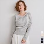 襟元のドレープ?ですが、クシュってなるのかなと思ってました。試着すると胸の上に一枚布が増えたような感じでした。説明下手ですみません。素材は柔らかくて着やすいです。薄めなので、暖かくなってからも着れるのが良いなと思います。