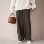 裏起毛パンツを探していて、こちらのホワイトを購入。シワになりにくそうな生地で厚いです。ウエスト、丈感はちょうどよかったです。透け感はほとんどありません。イエローのセーターとコーデしたら、とても明るい感じで良かったです。