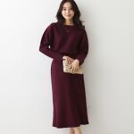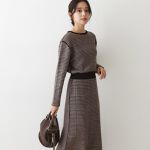ハイゲージで、組み合わせ4パターンともきちんと感があります。スカートのウエストがリブで楽なのに、ほどよくウエストがマークできスタイルよく見えるのもお気に入りです。
