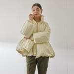 ふわふわっとした軽やかな白ダウンです。可愛らしい印象ですし、お顔周りも華やかになります♪