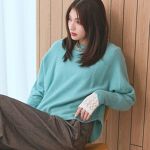 襟元が二重になっているところや少し長めの袖リブ、ラウンドになった裾など、一癖あって特別感があります。生地も上質な感じ。ただ、毛玉はできやすそうです。お手入れして大事に着ます。