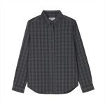 素材感は、薄手で、初秋や此れから向け、サイズ感は、少しユッタリで、デザインは秋冬物の王道チェック柄のシャツの衿に一工夫がポイントです♪