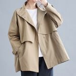 この時期の朝晩と梅雨などに使えそうなショート丈トレンチ風です。スタンドカラーがすっきりしてます