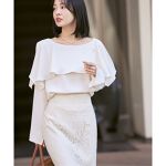 とろみ白いブラウスは結構たくさん持っていますが、こちらは肩のあき具合や袖がひらっとなってスリットが入ってる点などがとても可愛らしいです。フリルっぽくなっているのもとても素敵で、ノーブルのレースのタイトスカートと合わせて着ています。肩の部分が結構浅めなのですが、広く開いていてブラ紐が見えてしまうので要注意ですが、とてもエレガントで素敵なトップスでした。イエベ春の骨格ウェーブですが着ていると褒められます。丈が短いので出して着てもバランスが取りやすそうです。