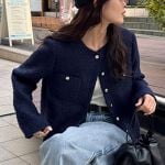 単色の色味のツイードはあまり見ないのと、品があるので綺麗めなパンツやロングスカートにも合わせやすいと思います。