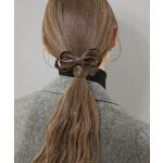 リボンの輪っかの傾き加減に個体差があります。モデル着用のように左右で上下に広がるアシンメトリーな形ならよかったのですが、そうではなかったのが少し残念。真ん中でガッチリ溜まっているので、自分で輪っかを広げたり傾けたりできません。