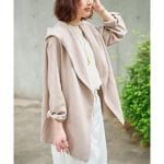 形は綺麗で女性らしく着られます。ベージュの色味は思ったより暗めのトーンでしたが、秋も浮かずに着られるので良いです。気温20度になるとちょっと暑いかなと思います。素材感はあまり好みではなく、店頭で見ていたら選びませんでした。またカジュアル寄りで、毛玉ができやすそうな予感がしていいます。私にとっては値段相応とは言い難いのですが、普段に気兼ねなく着れておしゃれに見えるので活躍しそうです。