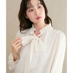 高校の卒業式用にネイビーのダブルジャケットとパンツのスーツを購入。かなりシンプルなのでブラウスは派手目にしました。リボンを下の方で結ぶと首にVラインができてすっきり見えます。ブローチもコサージュも不要なくらい華やかになりました。