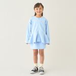 身長140センチ細身の子に、150サイズを買いました。画像のモデルさんのようなサイズ感です。肩は少し落ち、指先近くまで隠れます。袖口を細目に二つ折ってちょうど良い感じです。来年用かなと思いましたが、本人は気に入って、早速着たがっています。
