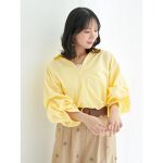 スキッパーカットの襟と、タックを寄せた袖が体型カバーになります。色違いも持ってます。