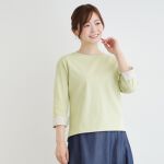 着丈が短めでスタイリングのバランスが良さそうです。袖口の折り返し部分が刺繍生地になっているので、カットソーながらお洒落な感じです。