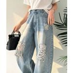 レースにキュン!ラフに攻めて。綿100% レース付きダメージデニムカーブパンツの口コミ一覧