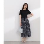ブラック×ブラックのMを購入しました。さらっとしたニットに、軽めの生地のスカートで涼しく着られそうです。ウエストが一周ゴムで締め付け感がないのも暑い時季に向けて良いと思いました。