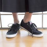 細身のデザインなので、通常より大きいサイズに。素足ではゆるいが、靴下と中敷きでちょうどな感じ。細身だけあって野暮ったく見えないのが良い。