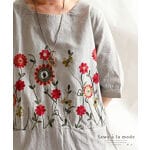 素材は、さらっとした感じで涼しそう。花の刺しゅうが可愛らしいです。適度なゆとりがあって気に入りました。