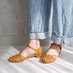 リピート買いです。足を華奢に見せてくれるデザインが気に入っています。肌に馴染む色で、カジュアル、オフィス、両使いできます。歩いている時にストラップがたまに外れますが、かかとホールのところに引っ掛けると、外れにくくなります。私の足だと外側くるぶしにかかとホールのところがわずかに当たるので、かかとのインソールを敷いています。緩衝材になるうえ、ヒールが(僅かですが)高くなるので一石二鳥です。