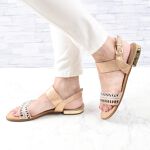 ビジューが綺麗にデザインされていて、とても安く買うことができて満足です。履いた感じも柔らかく、ヒールもほとんどないので、疲れなそうです。ベルトもゴムになっていて伸びるので、足にフィットしてMサイズでちょうどよかったです。