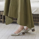 チャンキーヒールは安定感があり、ガンガン歩けます。ヒールの色が違うのって以前は抵抗あったのですが、後ろからしか分からないし、見えないおしゃれって感じで今は気に入っています。