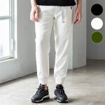 生地が「ちぢみ」風で軽くはないのですが、着用感は軽いです。スポーツウェア風のおしゃれなパンツで股上がやや浅め。生地も特徴的でありふれた感じがなくて良いと思います。