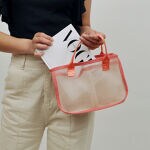 グレーを購入しました。たくさんあるバッグインバッグの中でメッシュやビニール透ける素材のものを探していました。こちらはストレッチ素材ではありませんが柔らかくて少量入れたらスマートになりたくさん入れても生地が馴染みます。下敷きも付いていますのでしっかり置けます。仕切りも工夫されています。取手の部分も硬めで安物ぽく見えません。オフィス持ち込み用にもおすすめです。