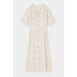 胸元がすっきりと空いていて、小ぶりなネックレスが映えそうでした。