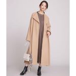 ロングでゆとりがあるデザインで、思ったよりも軽いのがとても良いです。ボタンがなくベルトで結ぶタイプなので着るものによって調整できるのも使いやすいです。丈が長く、166センチでくるぶし15センチ上くらいなので、階段では引きずるかギリギリだなと思いました。