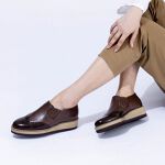 履きにくいですが、履いてしまうとフラットで楽です。革が馴染むまでキツさを感じます。踝の部分が当たるのも気になりますが、デザインが気に入ったので、工夫して履こうと思います。