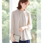 想像よりもさらに薄手で、インナーに注意が必要ですが、襟が詰まっていて上品ですね。