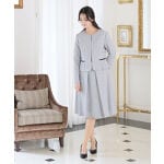 生地は少し光沢があるように見えて綺麗でした。大抵のワンピーススーツは、ノースリーブワンピや半袖のワンピとのセットが多いですが、こちらは長袖で肌寒い時季にも有難いです。ワンピースは一枚でも綺麗に着用出来ますが、少しネックが広めに開いています。ですが、ネックレスなどを合わせるにはとても良い感じのカッティングではないかと思いました。ちょっと素敵なお店での、お食事にも使えそうですよ。