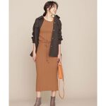 低身長で胴が短いため、ウエストの紐を絞ってブラウジングワンピースのようにしないとさまにならない感じです。モデルの方のような着こなしからは遠く離れてしまいますが、まあこれはこれでありかなと。細見えします。後ろのスリットが動きやすく、マシュマロタッチの着心地がとても良いです。