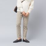 ベージュの21サイズを購入しました。サイズはぴったりで満足ですが、足にかけてのシルエットがストレートでゆったりとしたデザインで、細身のシルエットが好きなので星はひとつ減らしました。