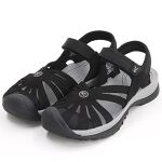 ブラック普段より大きめ購入 幅広外反母趾ぎみの私の足にフィットして 履いた初日から足裏のクッションもとても良く最適でした。足がむくんできても足首のマジックテープで調整できるので助かります。つま先を覆ったデザインのため オシャレ感があるスポーツサンダルです。