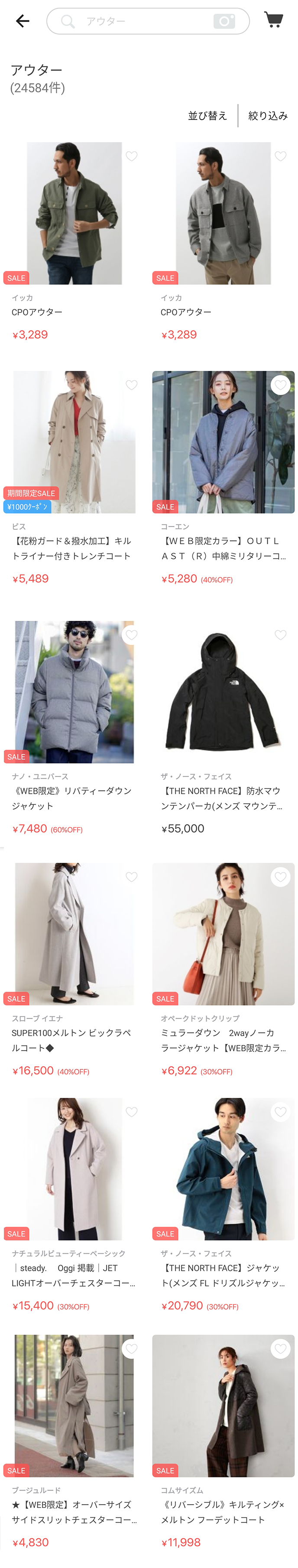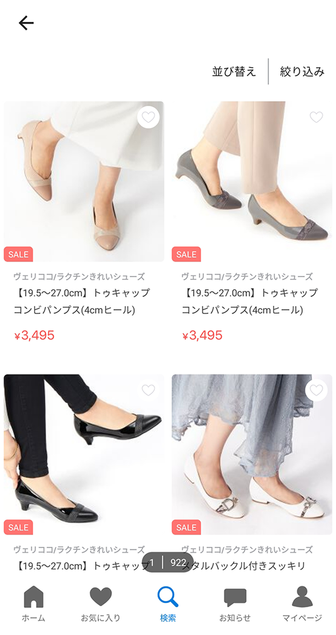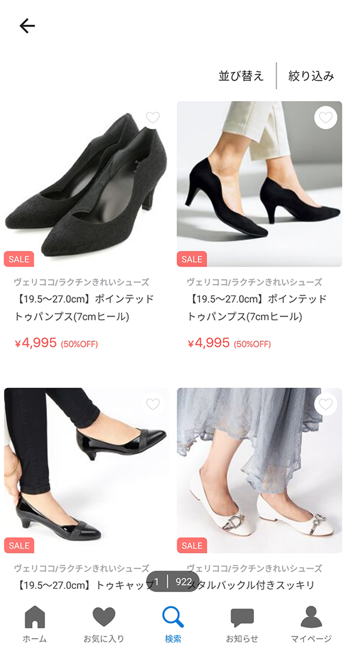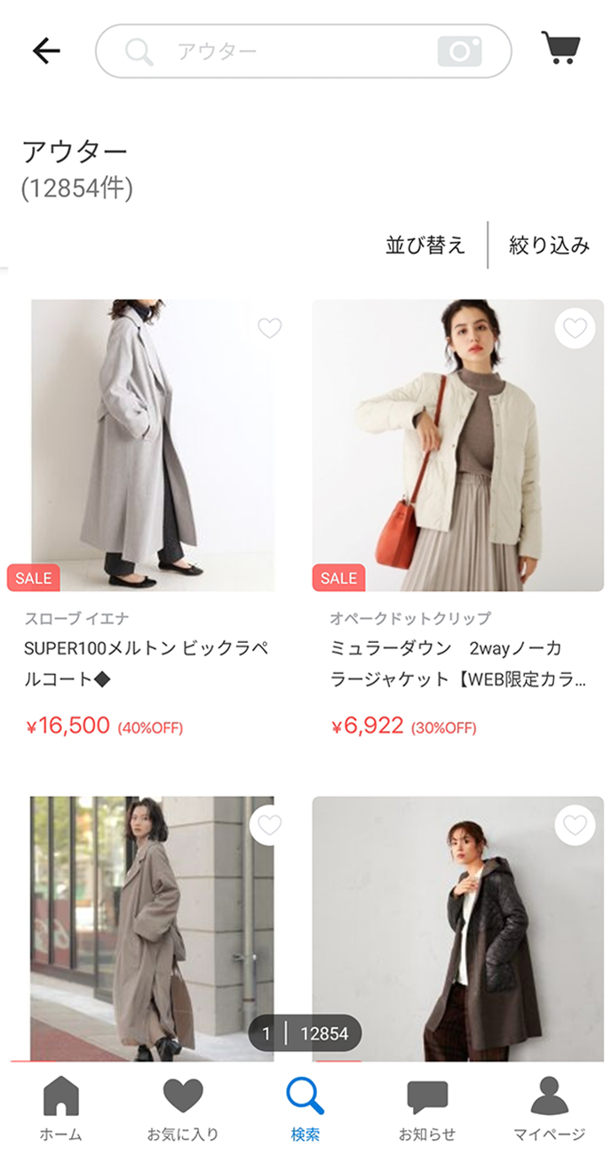 絞り込み検索・並び替えの表示をタップして、あなた好みの検索結果にしていくことができます。