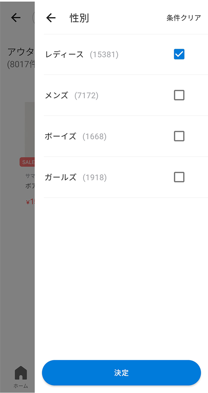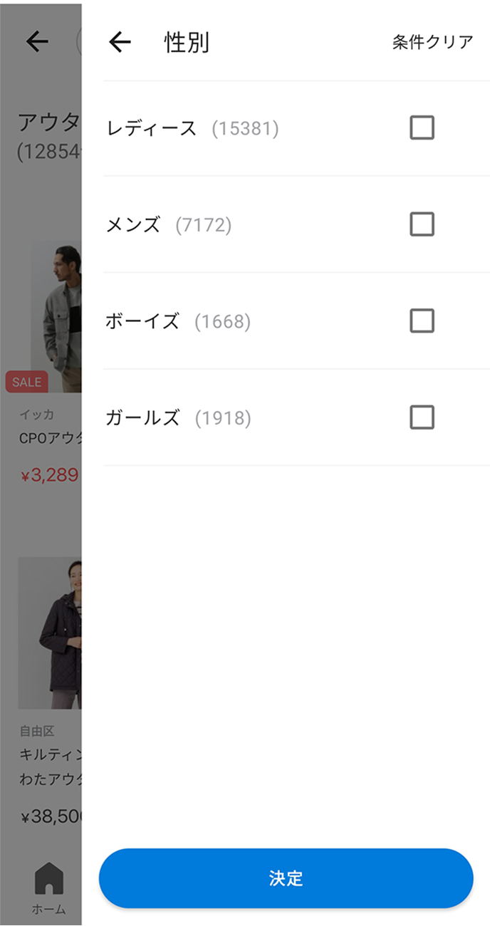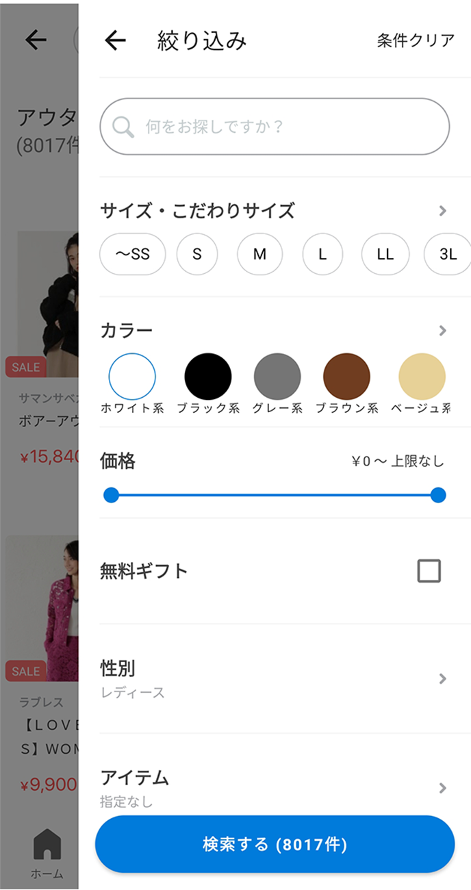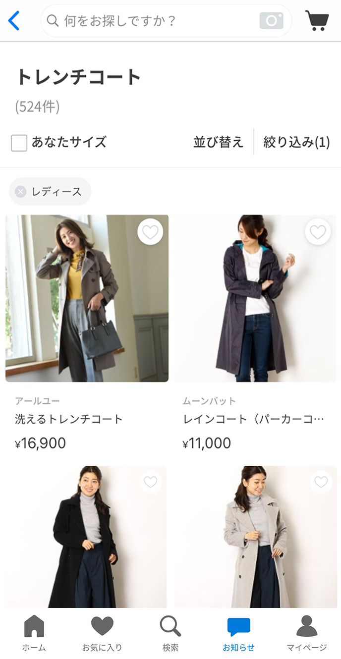 あなたサイズをONにすれば、お探しのサイズで在庫のある商品をすぐに検索できます。