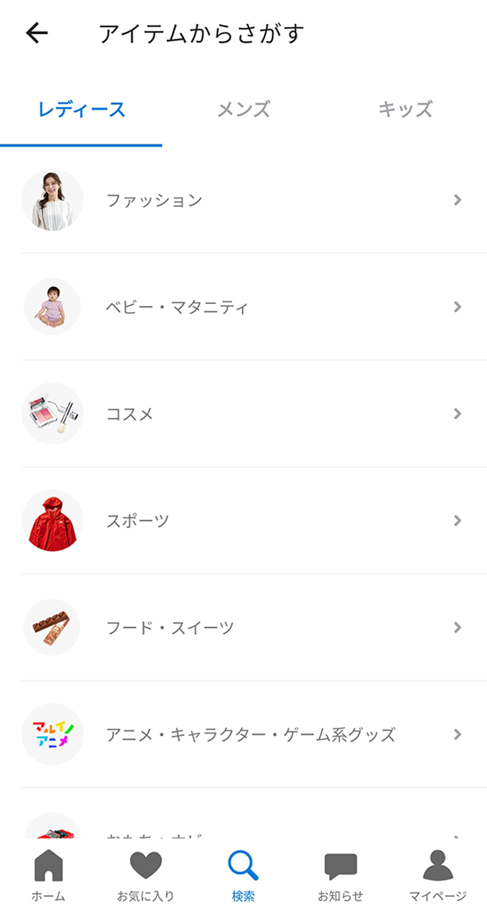 お客さまのお探しの商品に近いアイテムが手軽に検索できます。