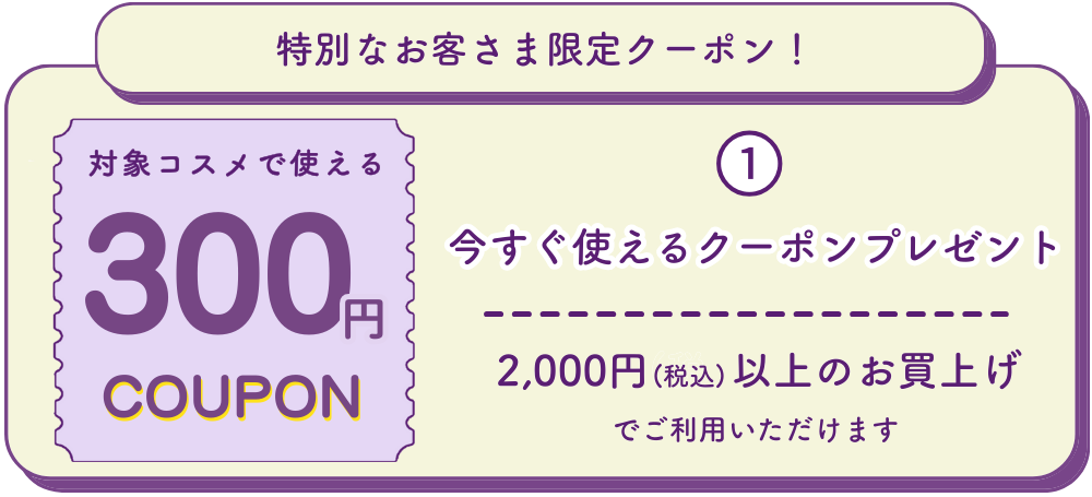 ❶【税込2,000円以上の商品(1点あたり)でご利用いただける300円分クーポン】について