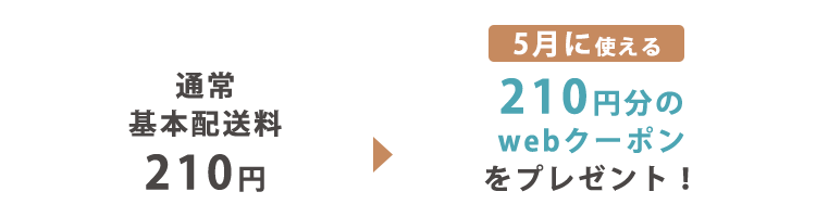 基本配送料相当額の210円分のクーポンをプレゼントいたします。