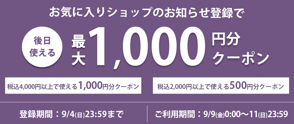 8/26(金)0:00~28(日)23:59の期間中、何度でも10%OFFでお買い物いただけます。