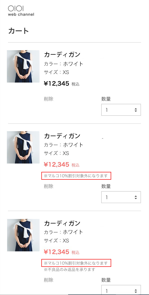 「マルコ10%割引対象外」のメッセージが表示