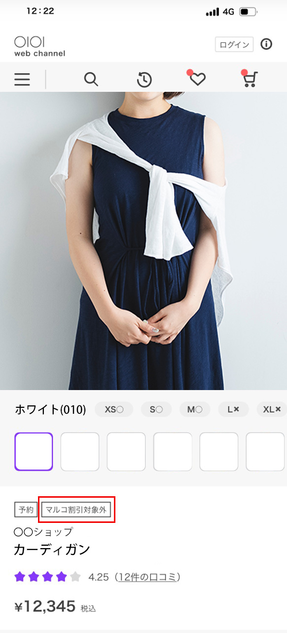 商品名の上に「マルコ割引対象外」と記載