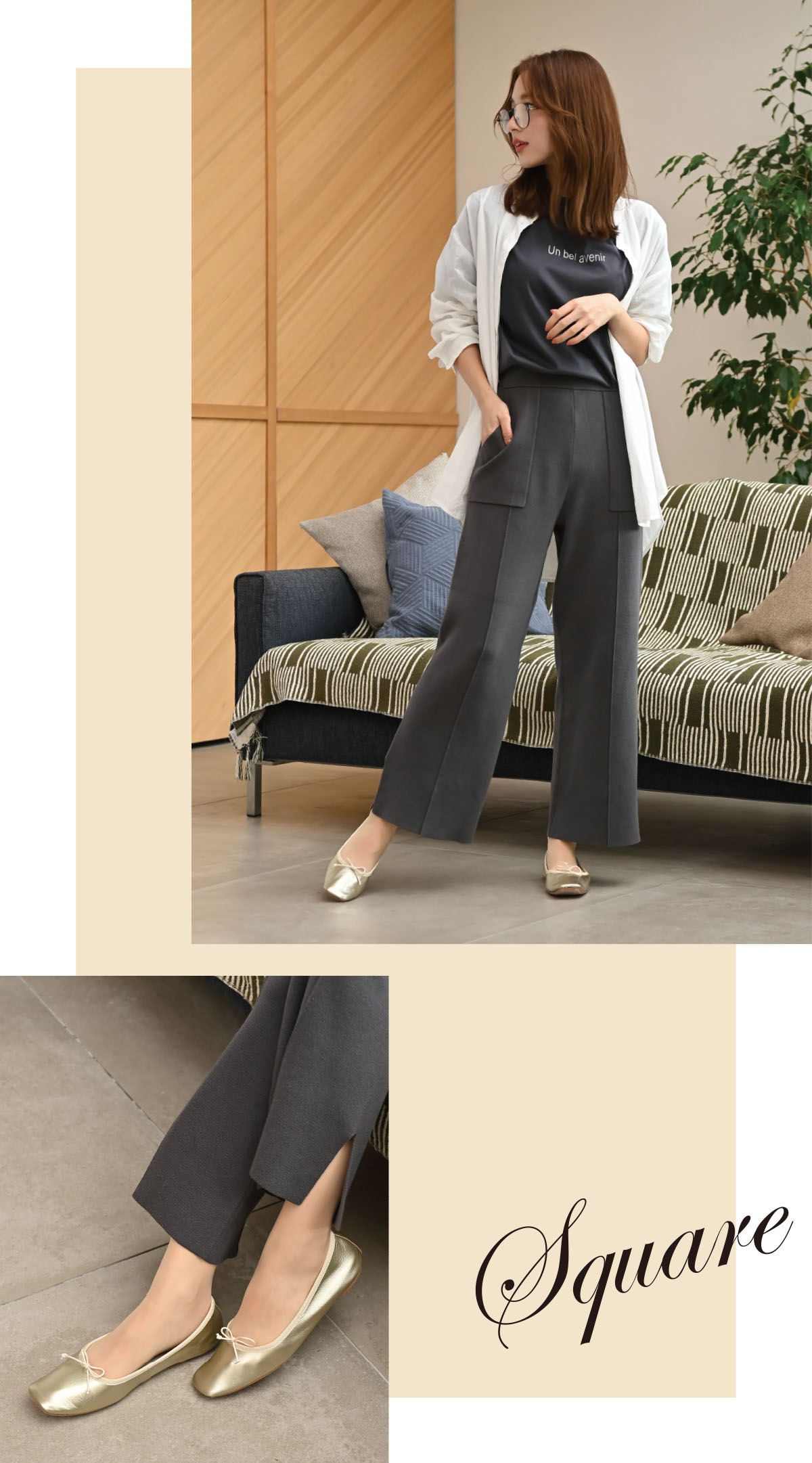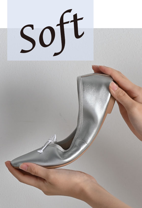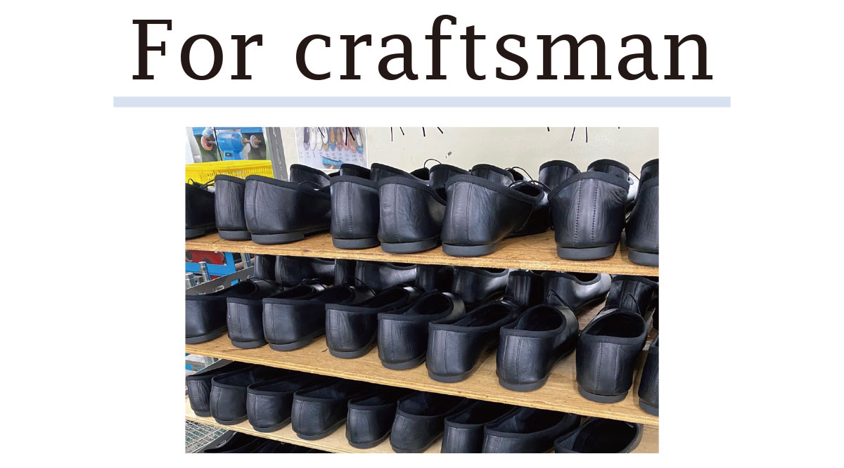 屈曲性の良いソールを使用し、のりを極力使用しない製法で作り上げることで、クッション性を高めています。